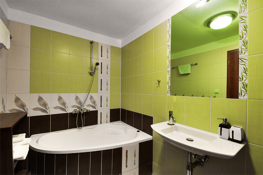 Dvojlôžková izba s manželskou posteľou a možnosťou prístelky. Apartmán sa nachádza v suteréne penziónu. TV, samostatná kúpeľňa s vaňou, WC. Izba má podúrovňovú terasu.